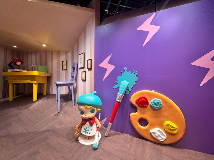 The exhibition answers this question right from the opening. In the prologue and the first section, "My Name is MOLLY," visitors learn about the origins of MOLLY and how designer Kenny Wong shaped her into a universally recognized IP. It turns out that this little girl with teal-green eyes and golden curly hair was inspired by a real person—Kenny spotted a young girl drawing quietly at a charity fundraiser and was struck by her look of total concentration. Taking her as his muse, he created the image of a painting-loving little girl with a perpetually proud, pouty expression.