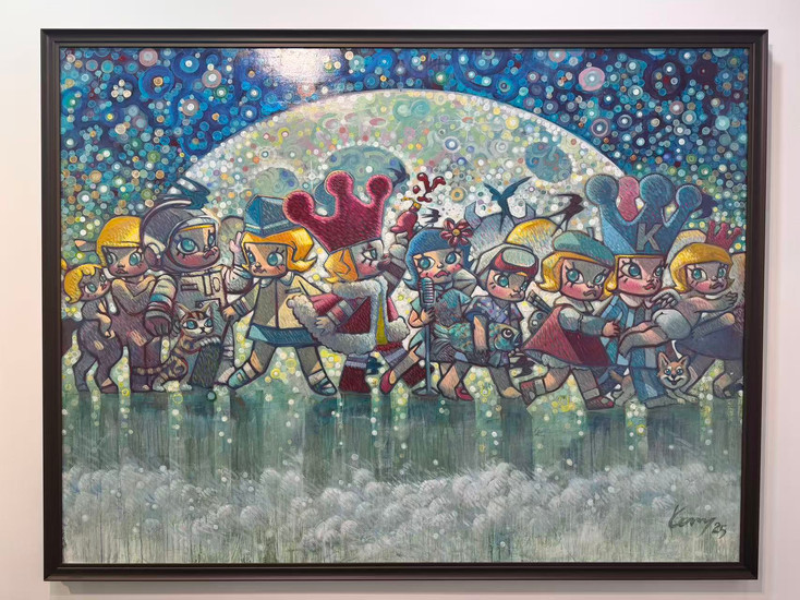 The exhibition displays a vast collection of MOLLY figurines, Kenny's original sketches, and paintings. A dedicated section showcases reinterpretations of MOLLY by other artists across a richly varied range of mediums—paper-cutting, Sichuan embroidery, Jingdezhen porcelain, candle sculpture, shadow puppetry, theatrical makeup and costuming, cotton-print dyeing, and reinterpretations by international painters. It is genuinely worth experiencing in person.