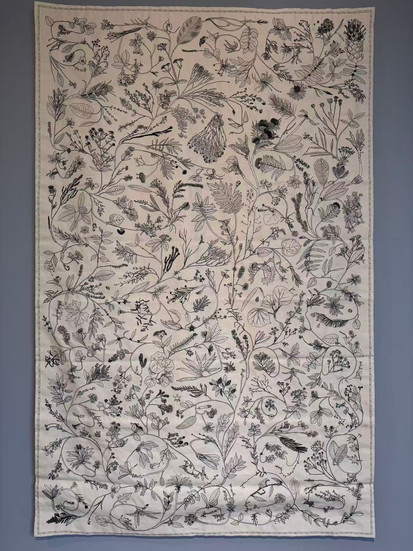 Let me start with Bund No. 1. The museum occupies the second floor of the building, where a contemporary art exhibition titled "Take All Things to the Limit" is currently on show, exploring the relationships between humanity, nature, and the environment. Environmental themes have long been among the most popular subjects in contemporary art, and I was genuinely curious about what distinctive character this particular exhibition might bring. The works here are primarily installation and video art. There is, for instance, a botanical installation—withered wheat ears "growing" out of concrete; a video piece showing a group of children marking colors onto snail shells and setting them to "race" within a designated circle; a video work titled Moving Mountain, in which two artists stand before a mountain watching flocks of birds spiral and cry overhead; and a room divided horizontally into two halves with white and blue-green paint, with suspended plastic "islands" likewise painted in the two colors according to their hanging height—at first glance, it genuinely looks like one is peering into a large aquarium installation. The piece that resonated with me the most was an embroidery work: botanical line drawings stitched in black cotton thread onto pale khaki canvas, initially appearing as a fresh and elegant work of art. But once you learn that the plants depicted represent 351 species that have already become extinct on Earth, can you still enjoy it with an untroubled heart? Personally, paintings of natural subjects are among my greatest loves, and I tend not to care for burdening any artwork with meanings that are too overtly "real-world"—nature in itself is worthy of being recorded and appreciated. Yet as a secondary school student facing all kinds of growing pains alongside my classmates, I found myself reflecting that "nature" can refer to everything on Earth untouched by human hand, but it can also point to a kind of inner logic and philosophy: zì rán ér rán—things unfolding naturally, in their own time. That will be the theme of my next curatorial project.
